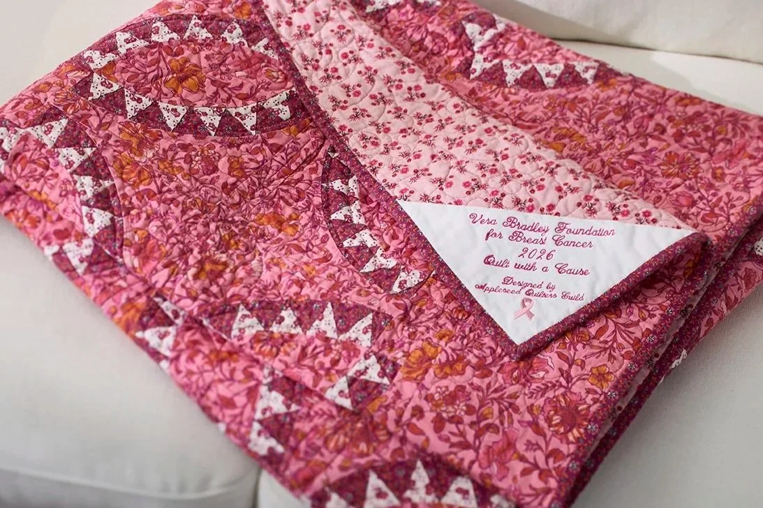 The 2025 quilt was made with the Vera Bradley Wing + Bloom pattern.